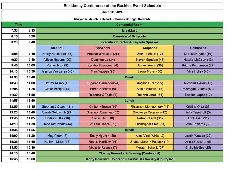 Please join the Colorado Pharmacist Society in the Annual Meeting Kick Off & Residency Conference Wrap Up - Joint Reception in the Cheyenne Courtyard on Thursday, June 12th, 4:30 – 6:00 PM